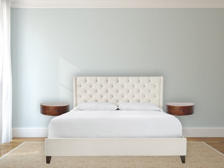 This wall-mounted nightsand has been constructed from 100% solid mango wood in a chestnut finish and offers a unique shaped design with rounded edges. It can be easily mounted on the wall without the fuss of legs. It also features 1 drawer perfect for storing any bits and pieces and keeping them close before bedtime.