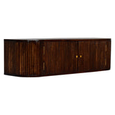 Inspired by our curved range, this chunky wall-mounted unit has been constructed from 100% solid mango wood in a chestnut finish and features 1 drawer with a shiny knob along with 1 open shelf for storing any bits and pieces you wish to keep close by before bedtime. It’s neat and clean design can easily be mounted on the wall without the fuss of any legs. Caution! Do not sit on the unit.